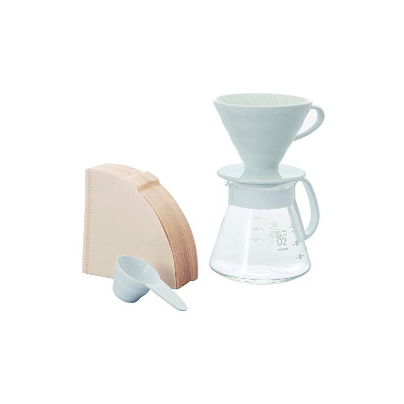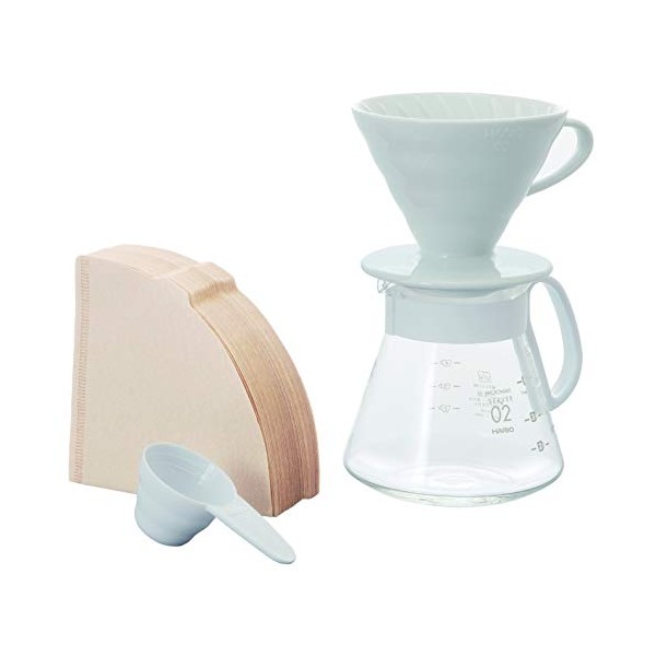 - Kit includes: Hario V60 Coffee dripper, Hario V60 Coffee server, Hario Coffee scoop and Hario V60 Disposable paper filters (100-Pack)
