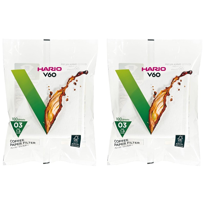 HARIO VCF-03-100W Paper Filter for V60 | 03W, 1 to 6 Cups | 200 Sheets | White