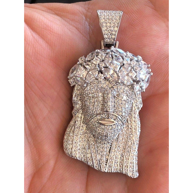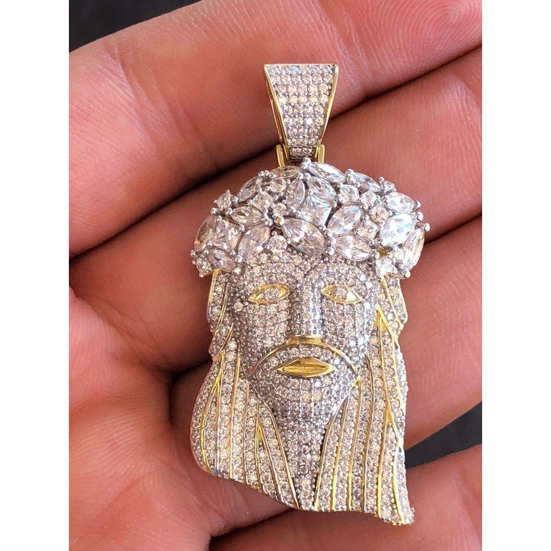- Real Solid 925 Sterling Silver Jesus Pendant - Comes In 14k Gold Plated, Two Tone, & Rhodium Finish