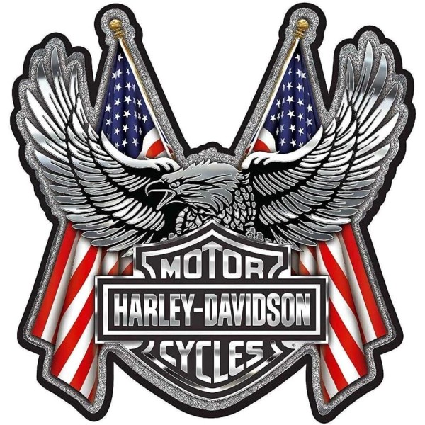 Harley-Davidson Chrome Bar & Shield Decal with Eagle & Flag - 5.5" W x 5.75" H
