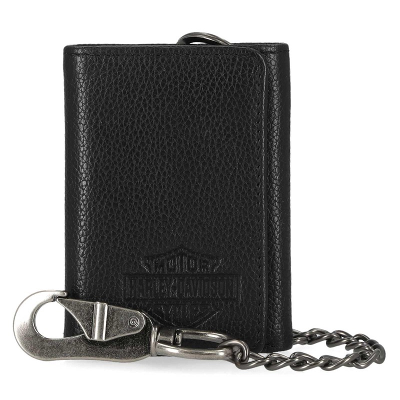 Harley-Davidson Men's Bar & Shield Core Pebble Chain Tri-Fold Wallet, Black, Black, 3.1" x 4.4"