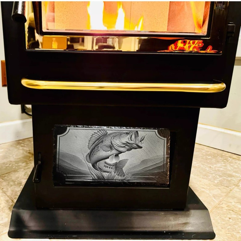 This is a high quality laser- engraved slate insert for Harman P series pellet stoves. Rather than a semi-permanent installation with a frame or silicone, our inserts are mounted using rare-earth magnets, allowing you to easily change out your slate in seconds! These inserts perfectly fit Harman P43, PC45, P61, and P68 model stoves ash door recess. These slates may fit other pellet stoves or can otherwise be hung or displayed. Each slate measures nominally 12” x 6”. Due to the nature of the slate being a natural material, slight variations in size and appearance can occur.