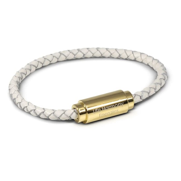 Harmonizer Mobility Protection Bracelet for Anti Wireless Frequency Health Support on The Go, Medium, White/Gold