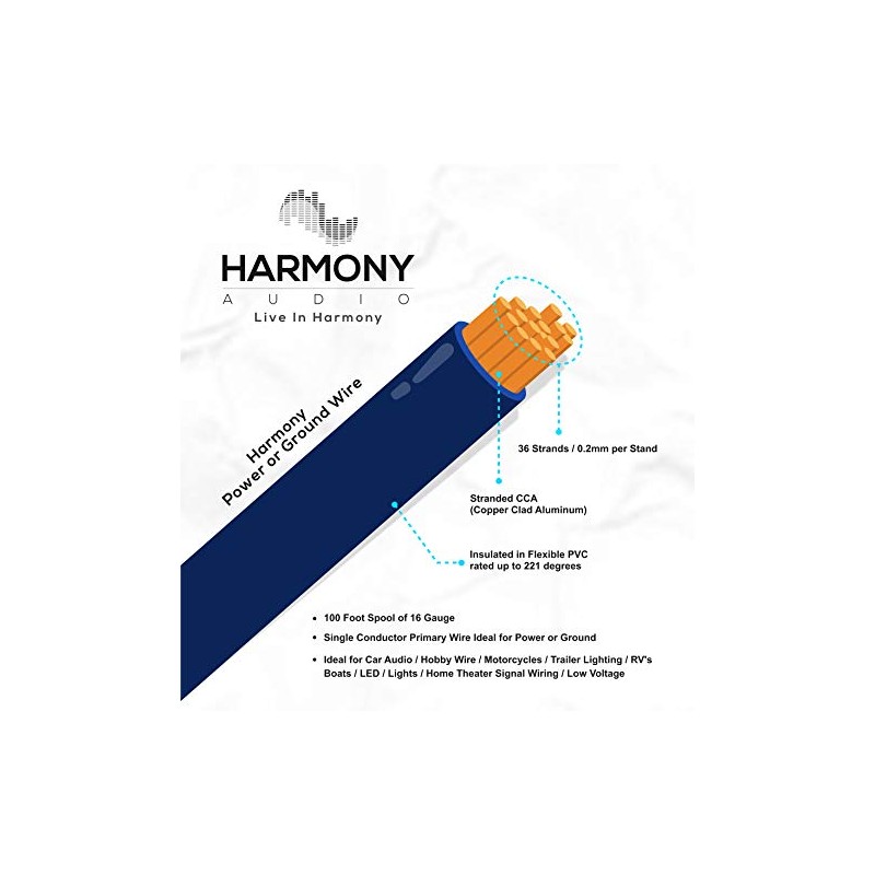 Harmony Audio HA-PW16PURP Primary Single Conductor 16 Gauge Purple Power or Ground Wire Roll 100 Feet Cable for Car Audio/Trailer/Model Train/Remote