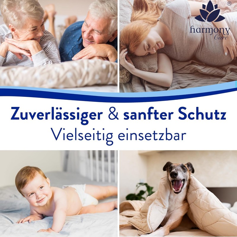 - Versatile – Our bed pads for incontinence are not only suitable for incontinence, but also for babies, dogs and the whole family. Use them as a mattress topper, as dog training pads, changing mat or as postpartum accessories. All in one, the waterproof mattress topper is the perfect moisture protection for mattresses, sofas etc.