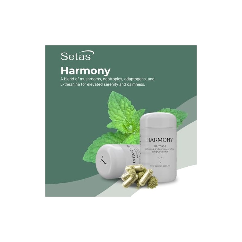 Harmony Ceremony Quality Botanical Supplement by Setas – Organic Reishi & Lion’s Mane, Ashwagandha, Linden Tree & L-theanine to Support Mood, Stress Management, & Calm, Vegan & Non-GMO, 60-Day Supply