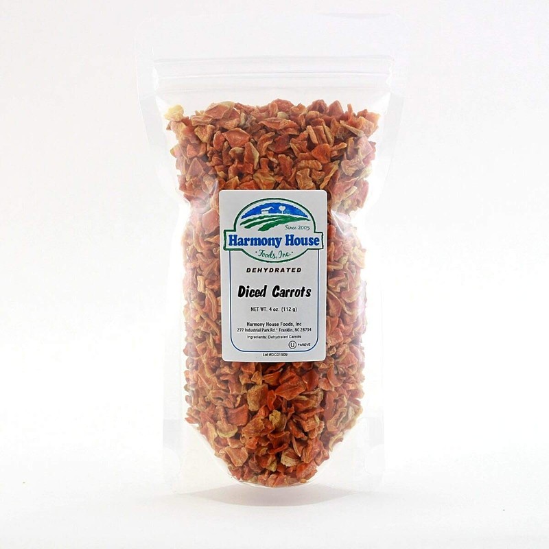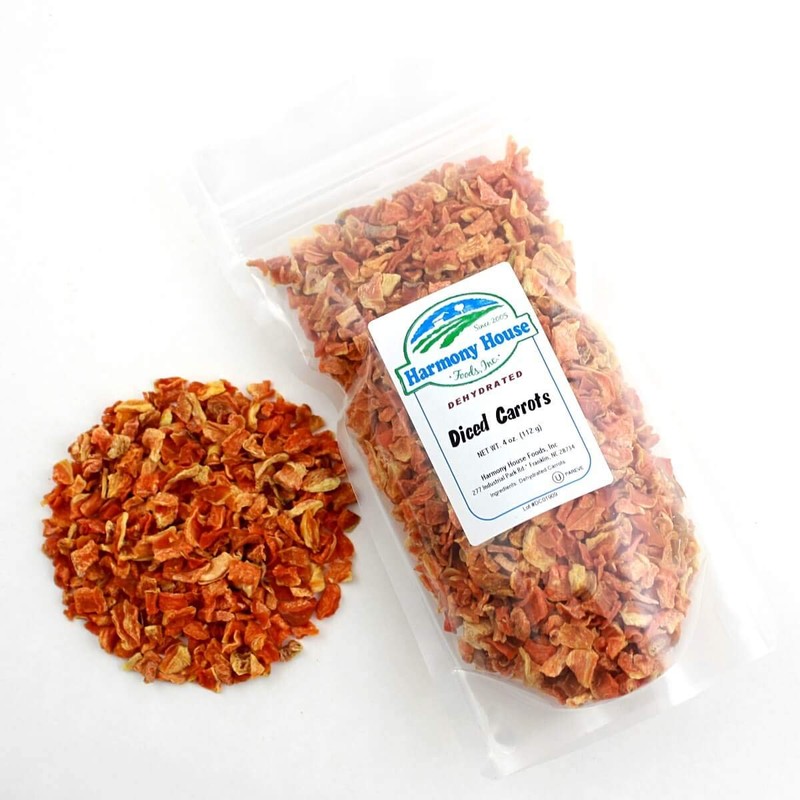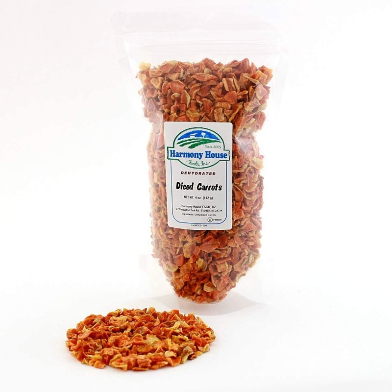 Harmony House Foods Dried Carrots, diced (3 oz, ZIP Pouch) for Cooking, Camping, Emergency Supply, and More