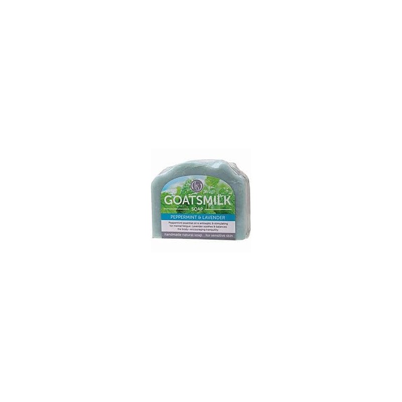 This handmade goatsmilk soap contains peppermint and lavender oil which is stimulating for mental fatigue and soothes the body. Smells good enough to eat!