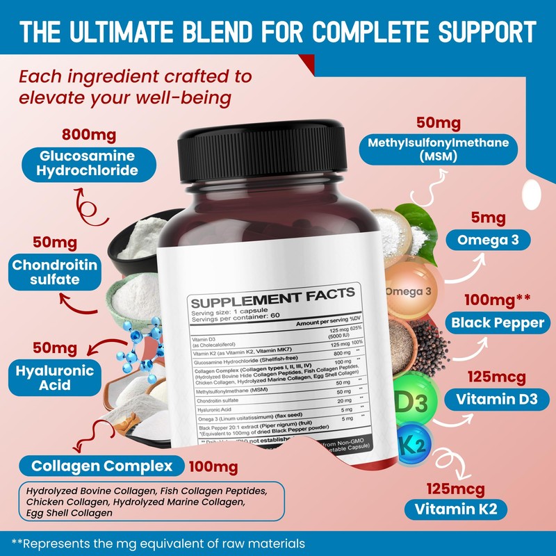 - Promote Your Joint Health – Utilizing advanced liposomal technology, our Glucosamine Chondroitin MSM supplement effectively enhances cartilage function, supports connective tissue, and promotes mobility for an active lifestyle