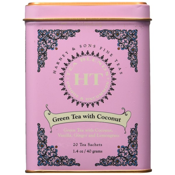 Harney and Sons Fine Teas, Green Tea with Coconut, 20 Sachets (Pack of 3)