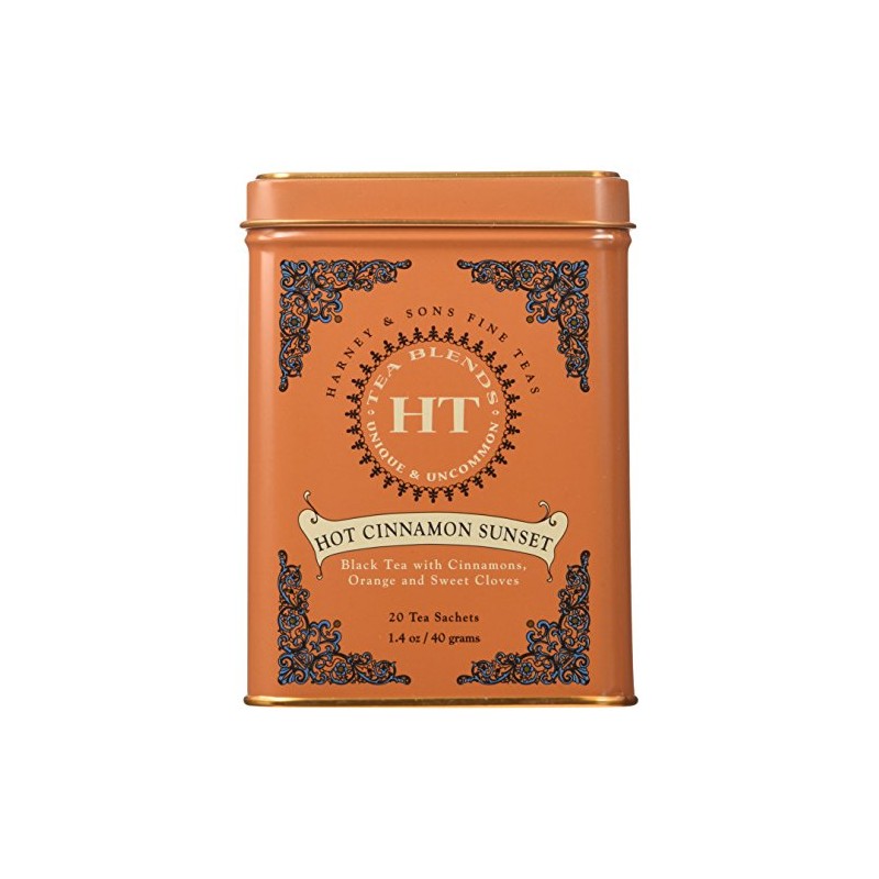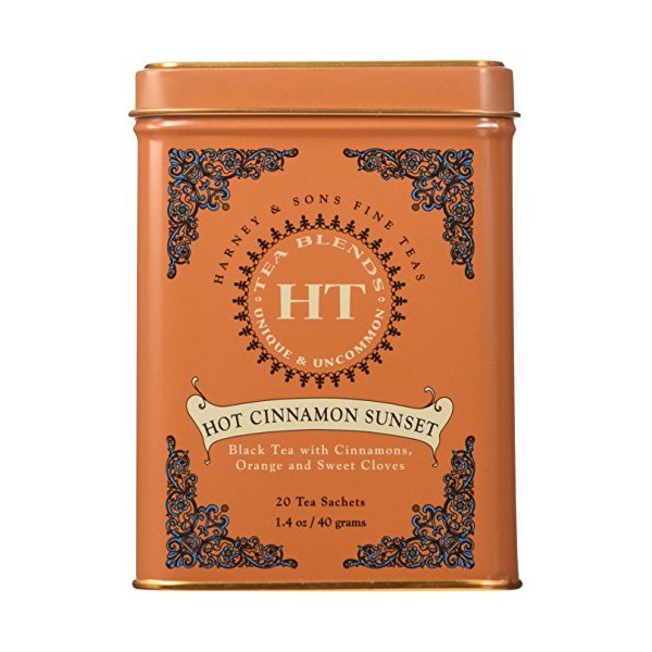 Harney & Sons Caffeinated Hot Cinnamon Sunset Black Tea with Orange and Cloves Tin, 20 Count, Pack of 3
