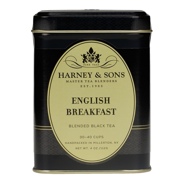 Harney and Sons English Breakfast Loose Black Tea – 4oz Loose Leaf Tin, Pure China Keemun, Bold, Full-Bodied Flavor, Great for Hot, Iced, or Teapot Brewing, Caffeinated