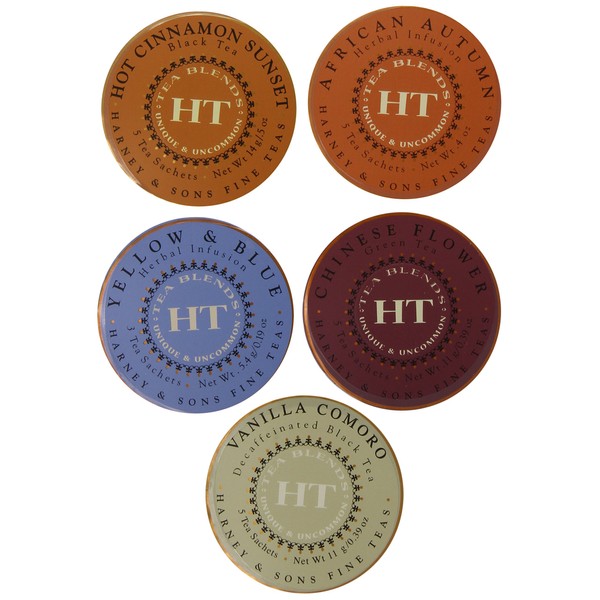 • Includes one 5 sachet tin each of Hot Cinnamon Sunset, African Autumn, Yellow & Blue, Chinese Flower, and Vanilla Comoro flavors