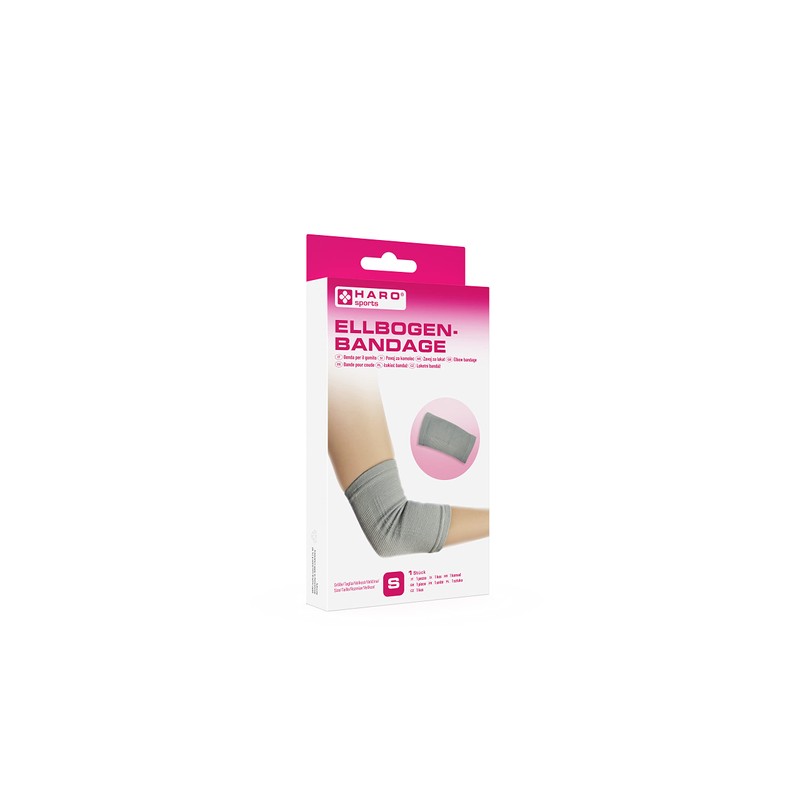 - The bandage should be tight, so you can easily determine the required size by measuring the joint circumference. The sizes of the elbow sleeves are suitable for the following measurements: size S 30 - 35 cm, size M 26 - 30 cm, size L 30 - 34 cm
