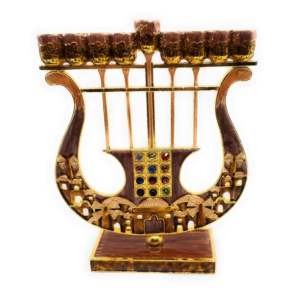 - A very unique design is shaped like David's Harp, painted with symbols of Jerusalem and featuring colorful Genuine Austrian crystals on the front