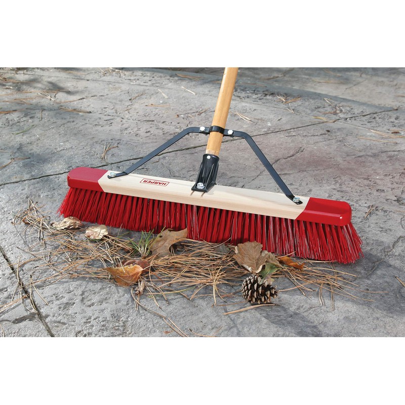 Harper has been perfecting the art of high-quality broom manufacturing since 1900 and this multi-surface, outdoor broom is a great example of that. The Harper 7324P1 Premium Indoor/Outdoor Wet/Dry All-Purpose Hardwood 24 in. Push Broom features semi-stiff Polystyrene bristles for maximum cleaning power on all surfaces. It also has a durable bolt-on connection to the wood handle with a strong steel brace. This 24 in. Push Broom with a hardwood handle and non- warping maple brush head offers long-lasting quality and efficiency.