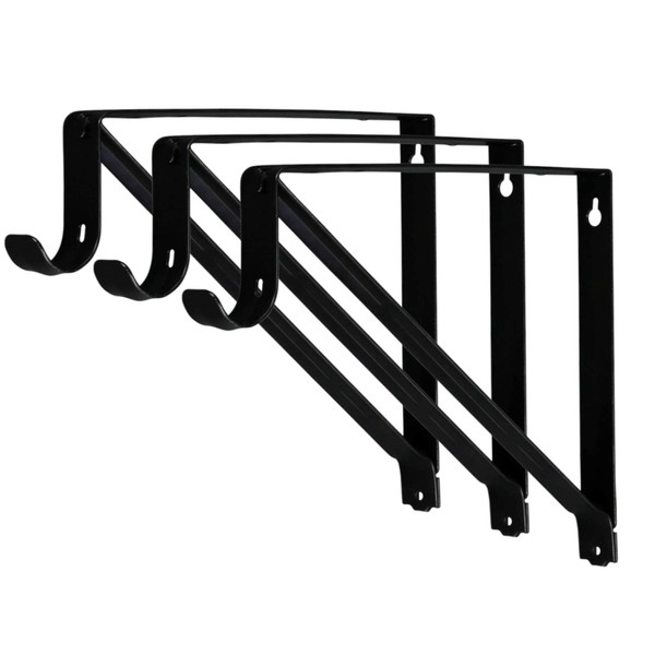 Harrier Hardware Premium Heavy Duty Closet Shelf and Rod Bracket, Black, 3-Pack