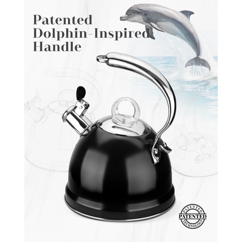 - Patent-Protected Dolphin Handle Design: Featuring a unique ergonomic dolphin-shaped handle, this whistling tea kettle blends modern aesthetics with nature-inspired elegance. Elevates your kitchen with a visually striking centerpiece