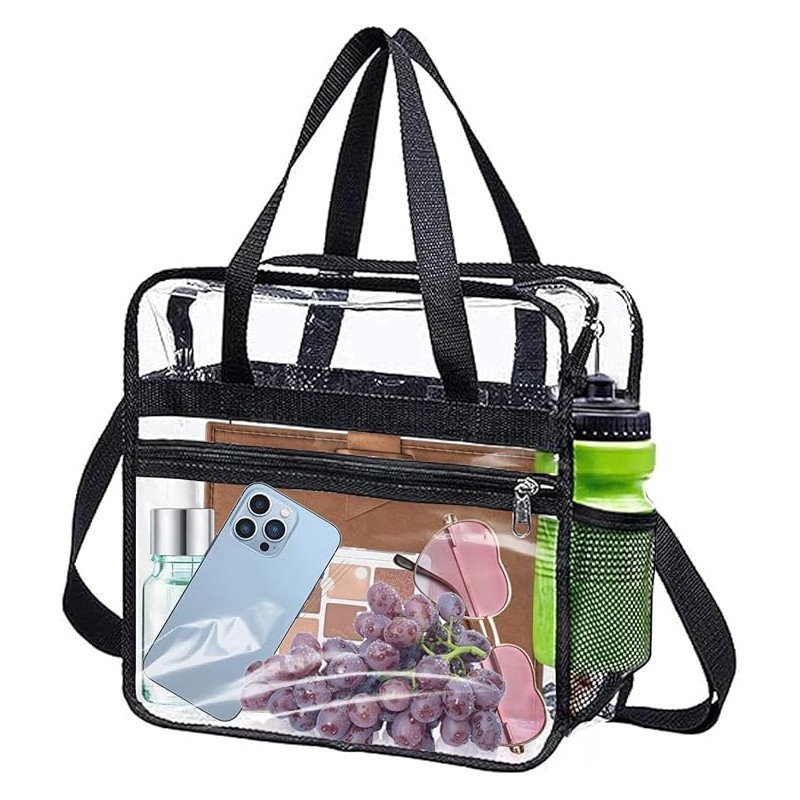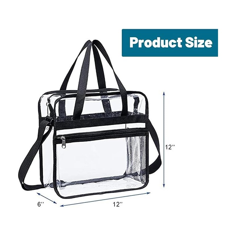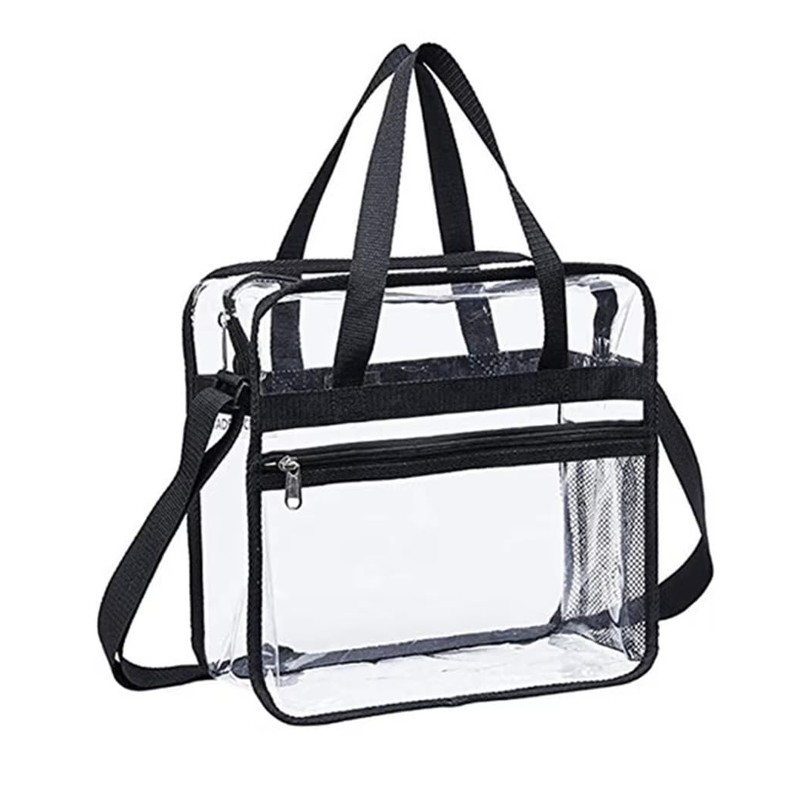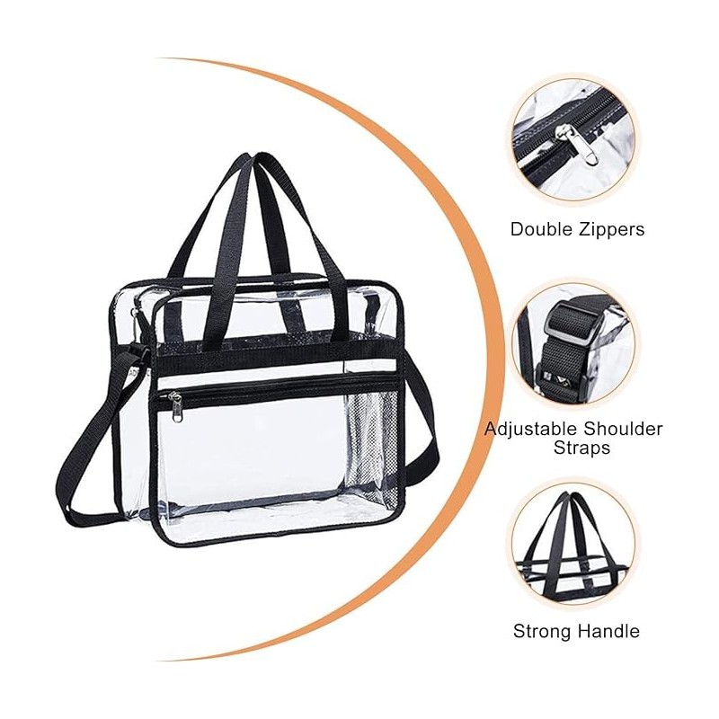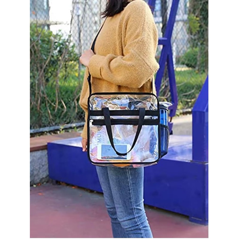 • PREMIUM DESIGN: Large transparent tote bag with adjustable crossbody shoulder strap for versatile carrying options and secure zipper closure