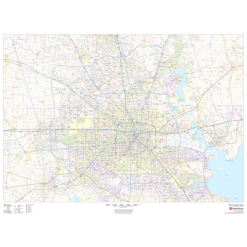 Harris County, Texas - 48" x 36" Laminated Wall Map