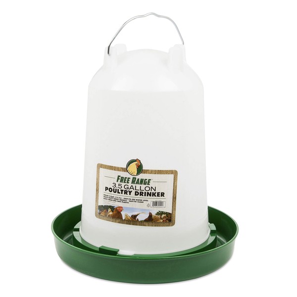 Molded from long-life plastic with durable fountain. Easy-to-fill and easy-to- clean drinker features a twist-lock system and hanger/carry-handle. Accommodates up to 56 chickens or game birds.
