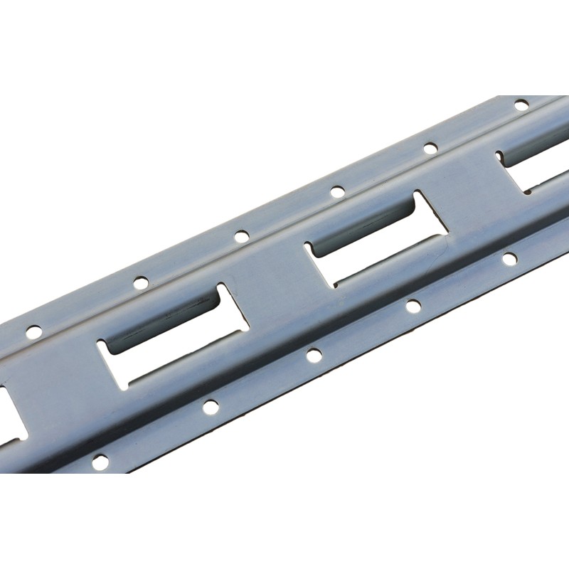 E-Track is the most versatile tie down product on the market today. It's unique design allows it to be used for a variety of uses. The track is designed to accept both "E" & "A" style fittings. Each section measures 5' Long x 3.45" Wide x 0.50" High. The track is pre-drilled with 0.25" holes on 2" center spacing for easy mounting. Our vertical "E" track is made from 12 gauge steel and is finished with a premium heavy duty plating process. This track is perfect for enclosed trailers, box vans, pickup beds, storage applications, and much more!
