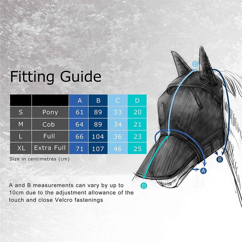 Harrison Howard CareMaster Horse Fly Mask Long Nose with Ears Full Face Black/Silver Retro Large Full Size