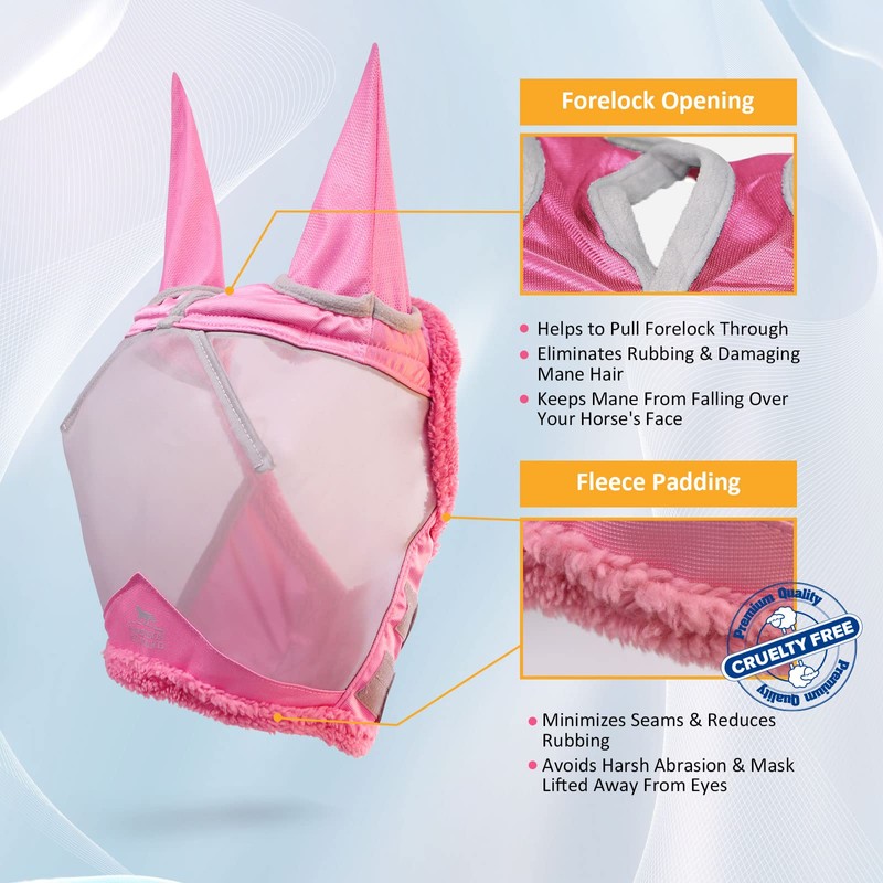 Harrison Howard CareMaster Midge-proof Fleece Padding Horse Fly Mask Half Face Extra Wool Protection Light Pink