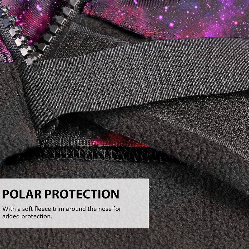 - With a soft fleece trim around the nose for added protection. The Hood is comfortable to wear without chafing or pressure.