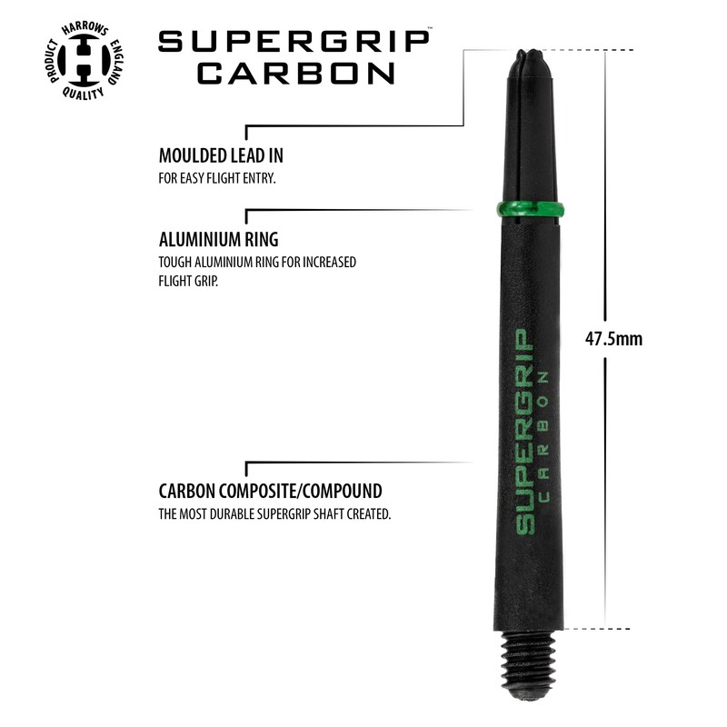 - Unrivalled Shaft Durability: Harrows Supergrip Carbon Green Shafts are crafted using a groundbreaking carbon composite, ensuring unparalleled strength and lasting performance, built to endure countless dart games.