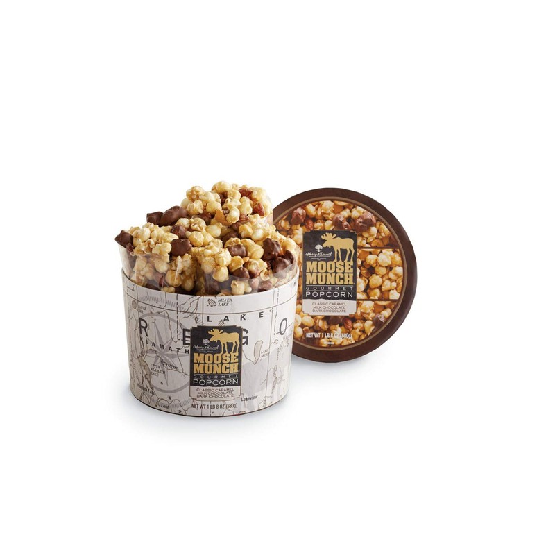 - Harry and David Classic Moose Munch 24 oz Gift Drum features 3 classic flavors: Dark Chocolate, Milk chocolate and Classic Caramel.