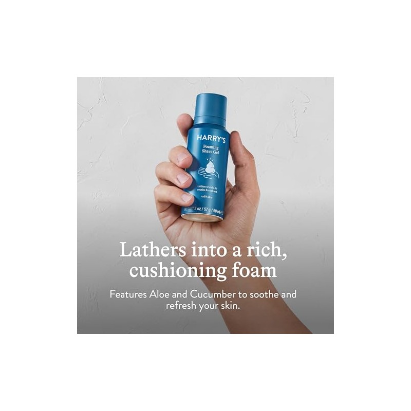 Product DescriptionHarry's Shave Gel is the first step towards a comfortable, close shave. Our Shave Gel lathers into a rich foam that helps your razor glide effortlessly over your skin. The lather protects your face and keeps you in control of your shave. Unlike many other foams pumped full of air, our rich, cushioning formula has natural ingredients, including aloe and cucumber, that hydrate and refresh your skin. Say goodbye to dry.DirectionsApply a small amount of gel to wet skin, lather into a rich foam, and use a razor to shave. Rinse after use.Safety WarningKeep away from flames