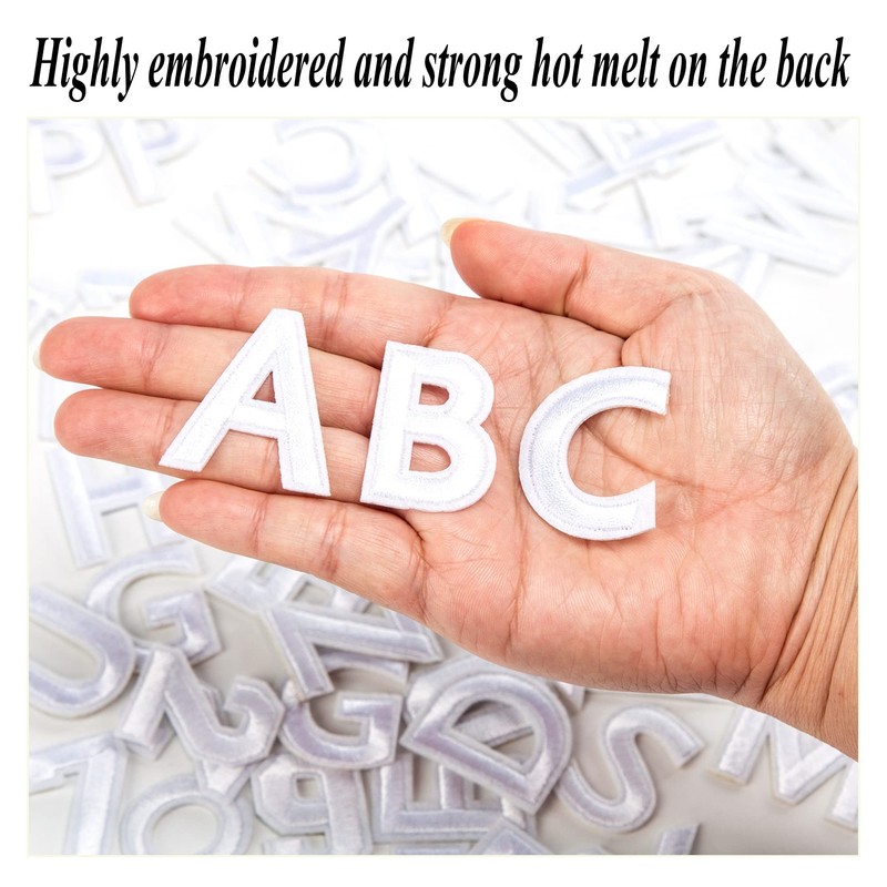 Harsgs 72 PCS Iron on Letters Numbers Patches, Embroidered Patches Letters A-Z Numbers 0-9 Applique for Clothes, Dress, Hat, Jeans, DIY Accessories, White