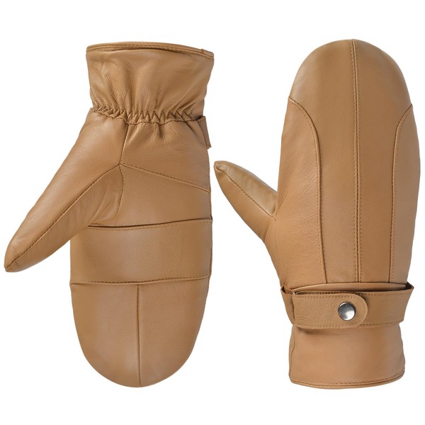 Harssidanzar Genuine Leather Mittens Mens, Warm Lined Winter Leather Mitt SM047CA,Camel,size L