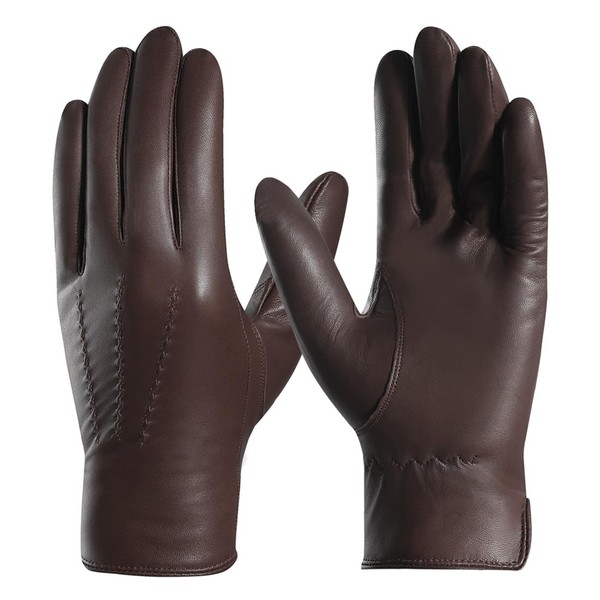 Harssidanzar GMEU006 Men's Leather Gloves Comfort Cashmere Lined, brown