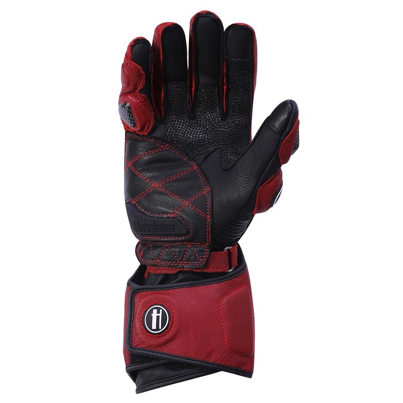 Harssidanzar Leather Motorcycle Gloves for Men and Women,Powersports Carbon Fiber Knuckle Protection Motorbike Gloves KM045CA,Oxblood/Black,Size M