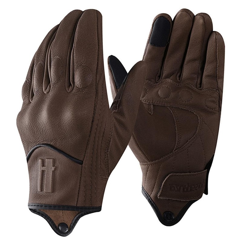 Harssidanzar Mens Motorcycle Gloves Fleece Lined Winter Warm Goatskin Leather Touchscreen GM041CA, Brown, Size Medium