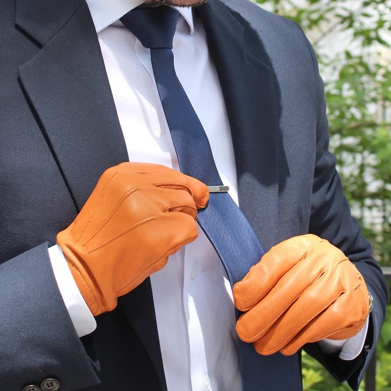 Harssidanzar Mens Thin Unlined leather police duty gloves GM031,Tan, Size S