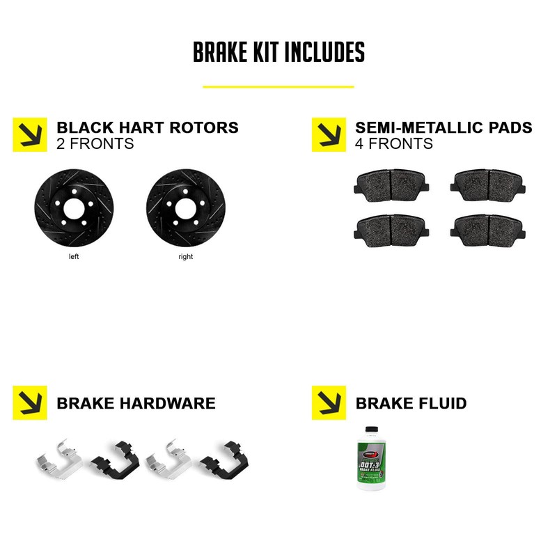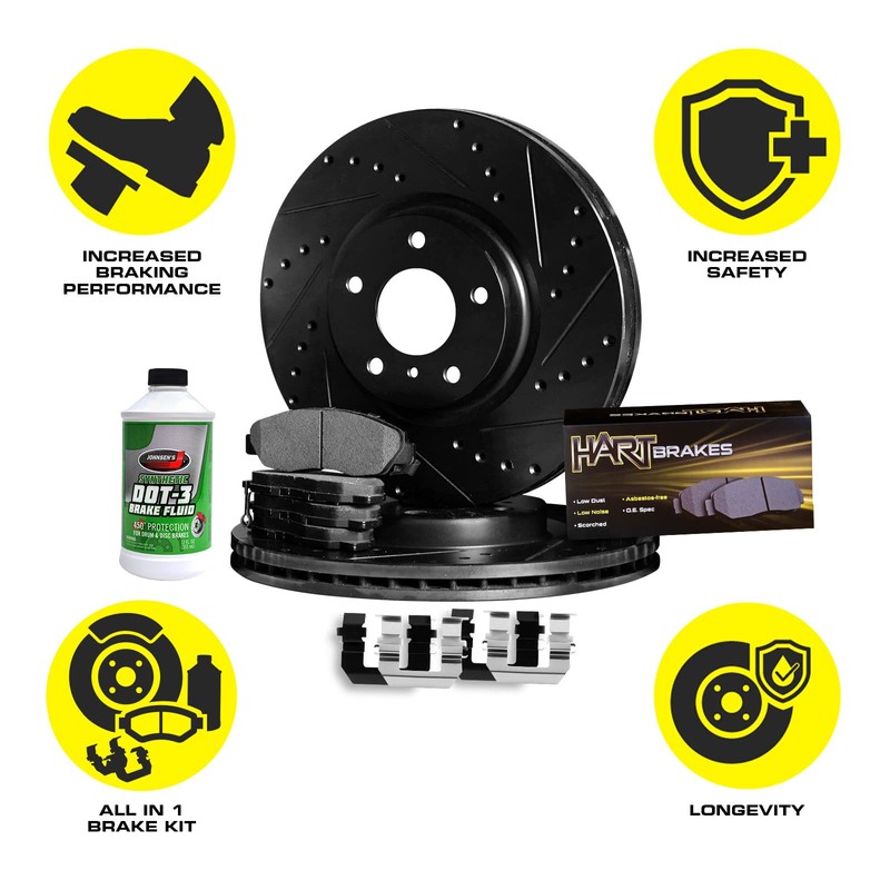 Hart Brakes Front Brakes and Rotors Kit |Front Brake Pads| Brake Rotors and Pads| Semi Metallic Brake Pads and Rotors| Hardware Kit - BHC1.64001.43