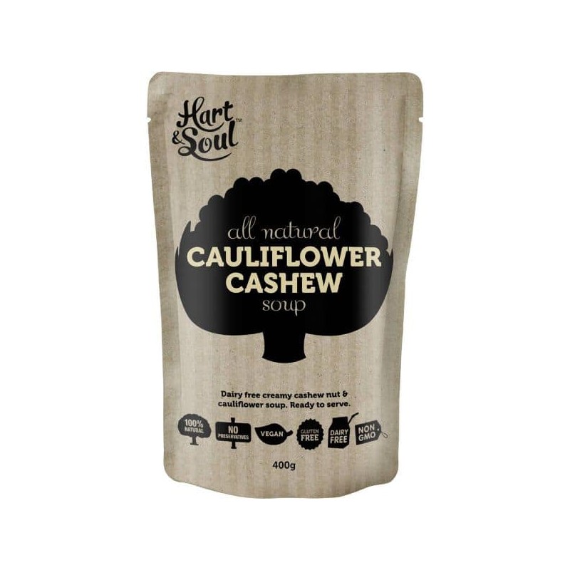 Hart & Soul All Natural Cauliflower Cashew Soup is a dairy free creamy cashew nut & cauliflower soup.