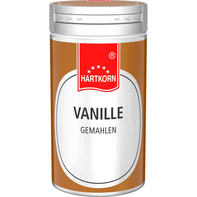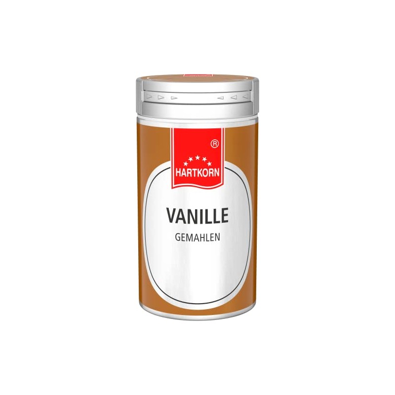 - Vanilla, ground (Vanilla planifolia ANDR.) - Filling weight: 15 g - In the aroma safe of the Hartkorn spice mill - Family business since 1920