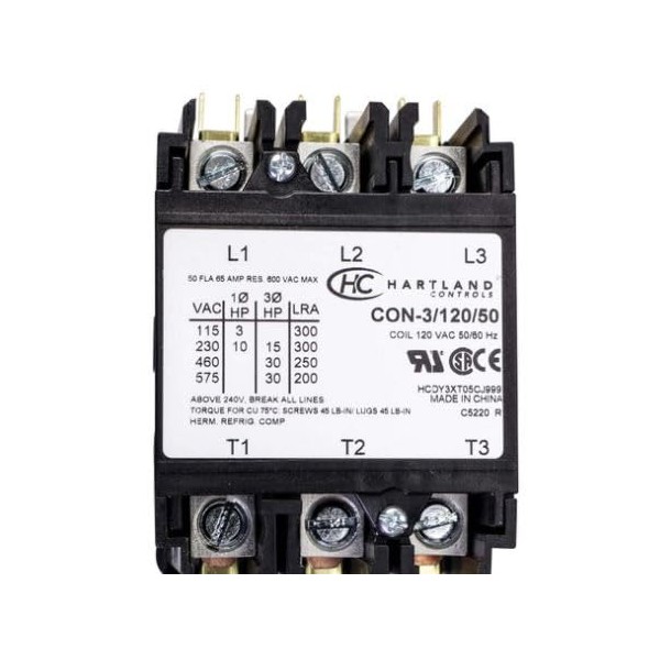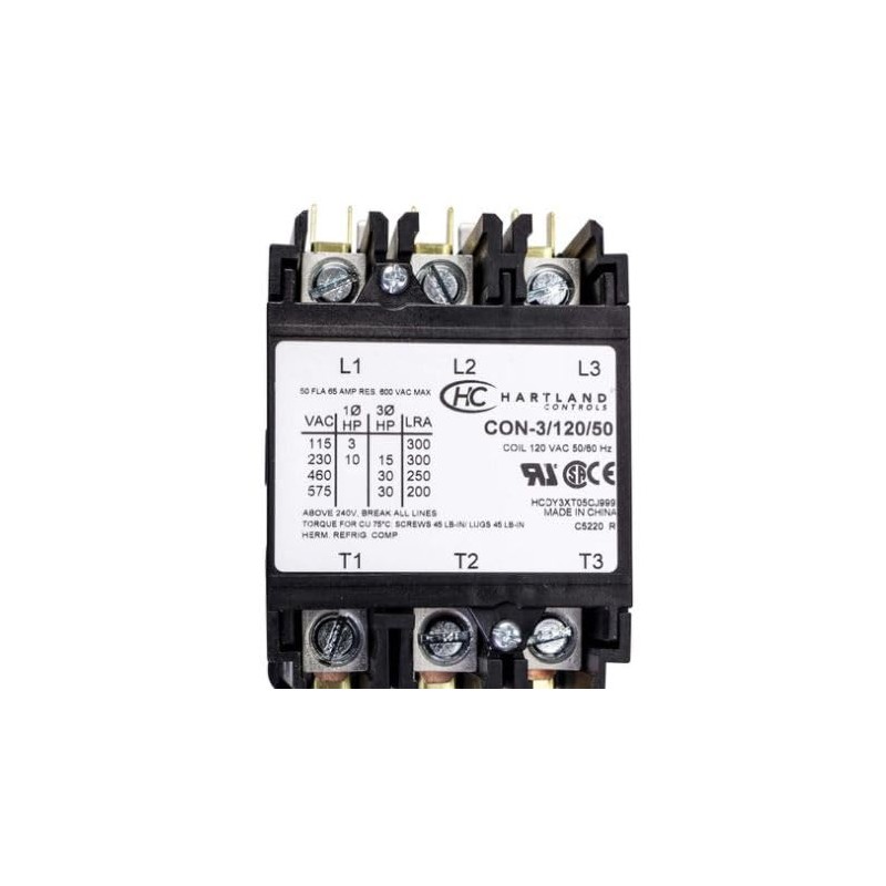Hartland Controls 3 Pole 50 Amp 120 Volt Coil Contactor