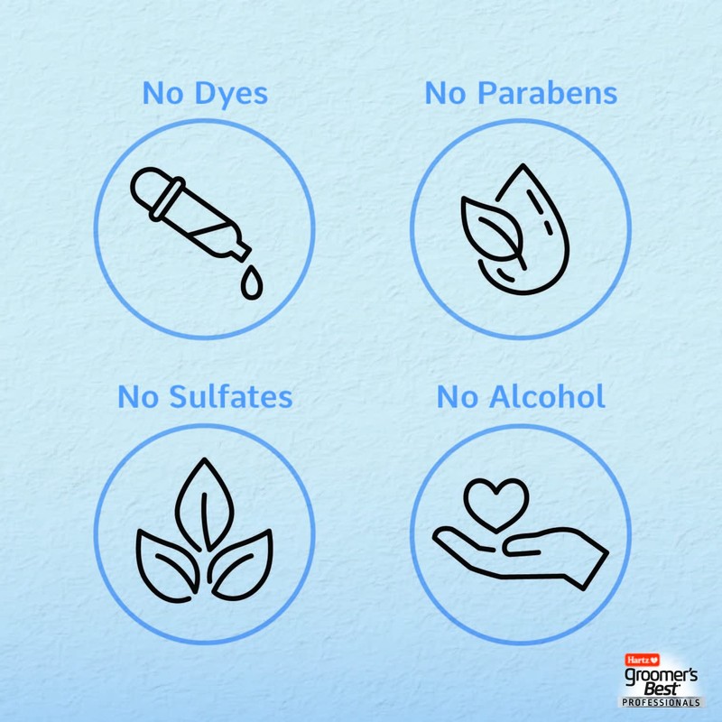 Wish there was a quality, professional-grade shampoo available for use at home? At last, Hartz Groomer’s Best PROFESSIONALS 6-in-1 Dog Shampoo is here. This dog shampoo was expertly formulated to effectively deodorize, clean, condition, detangle, moisturize, and strengthen your dog’s coat all in one step. This gentle formula provides a long-lasting lavender and mint scent to keep your dog smelling fresh, and includes Provitamin B5, which helps moisturize and strengthen the coat. Not having any added sulfates, parabens, alcohol, or dyes, this premium dog shampoo thoroughly cleanses your dog’s coat, leaving your pal soft, clean, and shiny. This sudsy fragranced solution is suitable for dogs of all ages and fur lengths. With Groomer’s Best PROFESSIONALS 6-in-1 Dog Shampoo, get the professional pet salon experience from the comfort of your own home, leaving your dog looking good and feeling fresh.