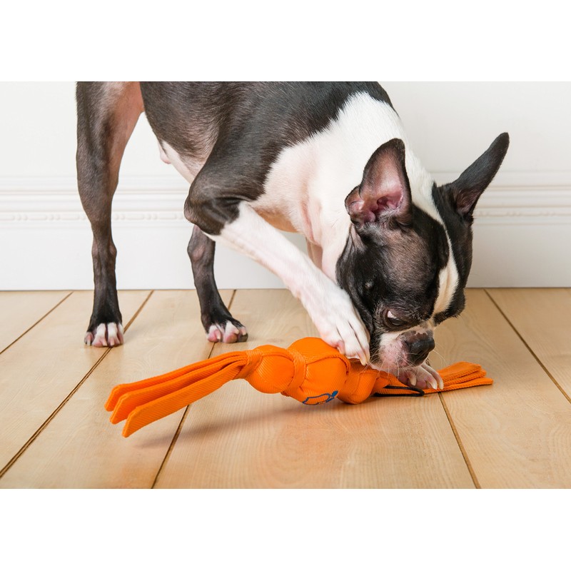 Dogs need to play, and an epic game time session of classic fetch and tug never gets old! Expend your waggy one’s endless energy with Hartz Tuff Stuff. Crafted from durable, ballistic nylon, the Fetch & Tug is made for ruff- housing with your best pal. The three floppy tails at each end add dynamic fun to playtime, making it easy to throw, toss and grab a hold of. The middle chamber contains a squeaky ball that will entice playful pups and cause instant excitement.