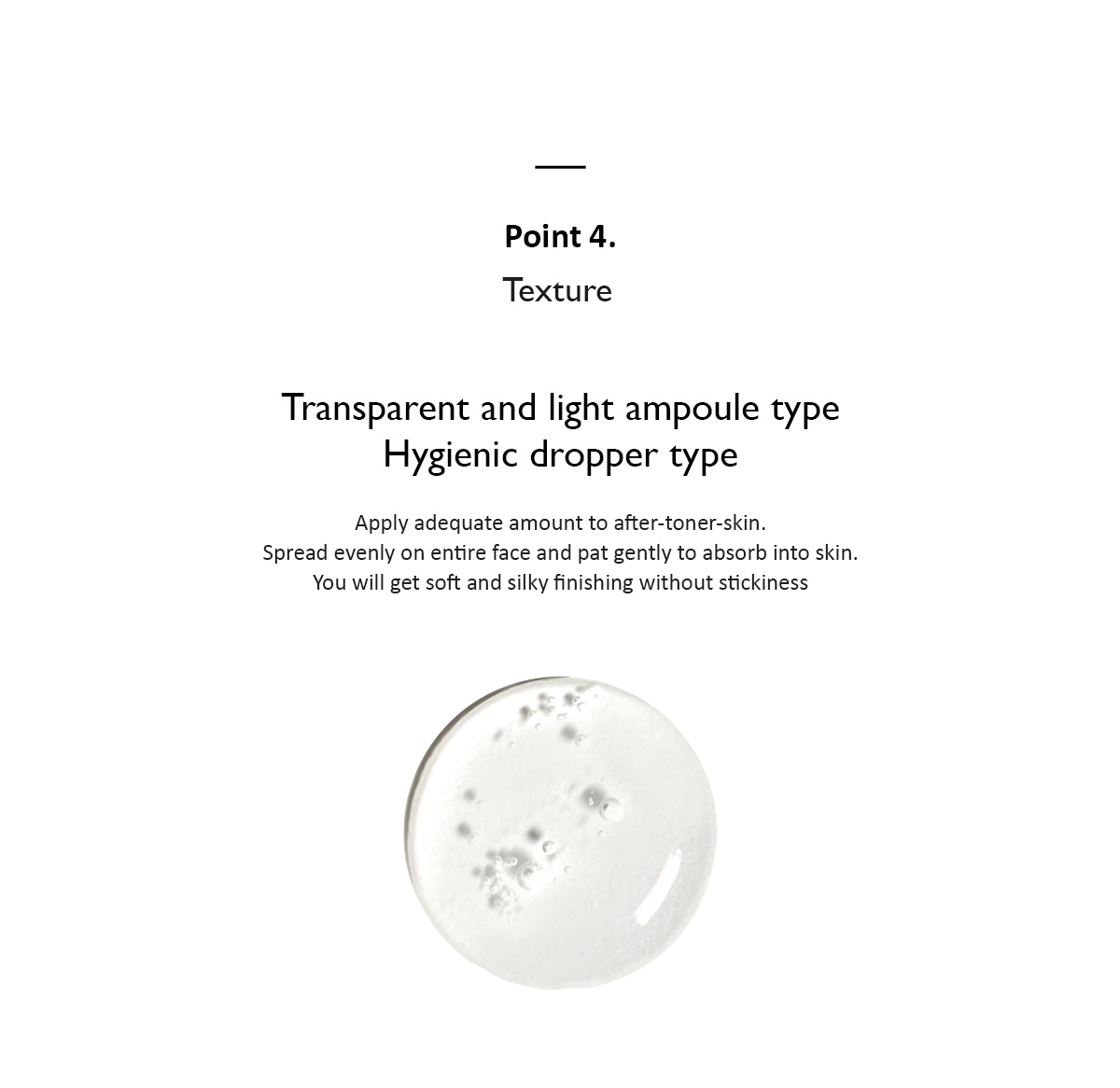 [Ampoule] Contains EGF, a peptide component composed of 53 amino acids, it provides the skin with firm and strong proteins. Contains FGF, a component composed of 155 amino acids, it helps to improve skin density and elasticity. Contains EGF, FGF that promotes skin layer activation, supplying moisture and nutrition to the skin, and helps maintain healthy and resilient skin. Contains fermented Oryza Sativa (Rice) for antioxidant effects. Contains fermented Phyllostachys Pubescens Shoot Bark Extract for anti-inflammatory and antioxidant effects. Contains Madecassoside to soothe and protect sensitive skin that has become irritated due to external stimuli. Contains DERMA-CLERA Vincetoxicum Atratum Extract for soothing and moisturizing properties that help to strengthen the skin barrier, leading to a hydrated and healthy skin. Hyaluronic acid moisturizes the skin inside and out, allowing for non-sticky daily care. It increases the skin's moisture, keeping it moisturized and lively. [Eye cream] Bacuchiol, a 100% plant-derived ingredient, enhances elasticity and helps improve skin tone while preventing skin oxidation with fermented Oryza Sativa (Rice) extract and fermented Phyllostachys Pubescens Shoot Bark Extract, providing excellent synergy for skin elasticity and tone care. Hydration layering with hyaluronic acid and Natto Gum enhances skin's moisture retention and elasticity. Contains Madecassoside to soothe sensitive skin that has been irritated by external stimuli and enhances the skin brightening effect by promoting melanin production. A dual functional product that contains Niacinamide and Adenosine, which are certified for whitening and improving wrinkles by the MFDS.
