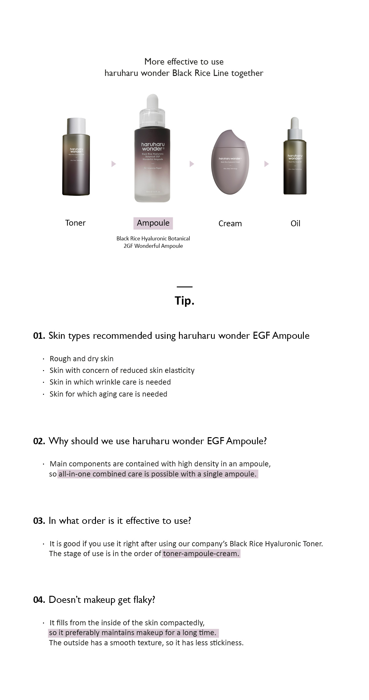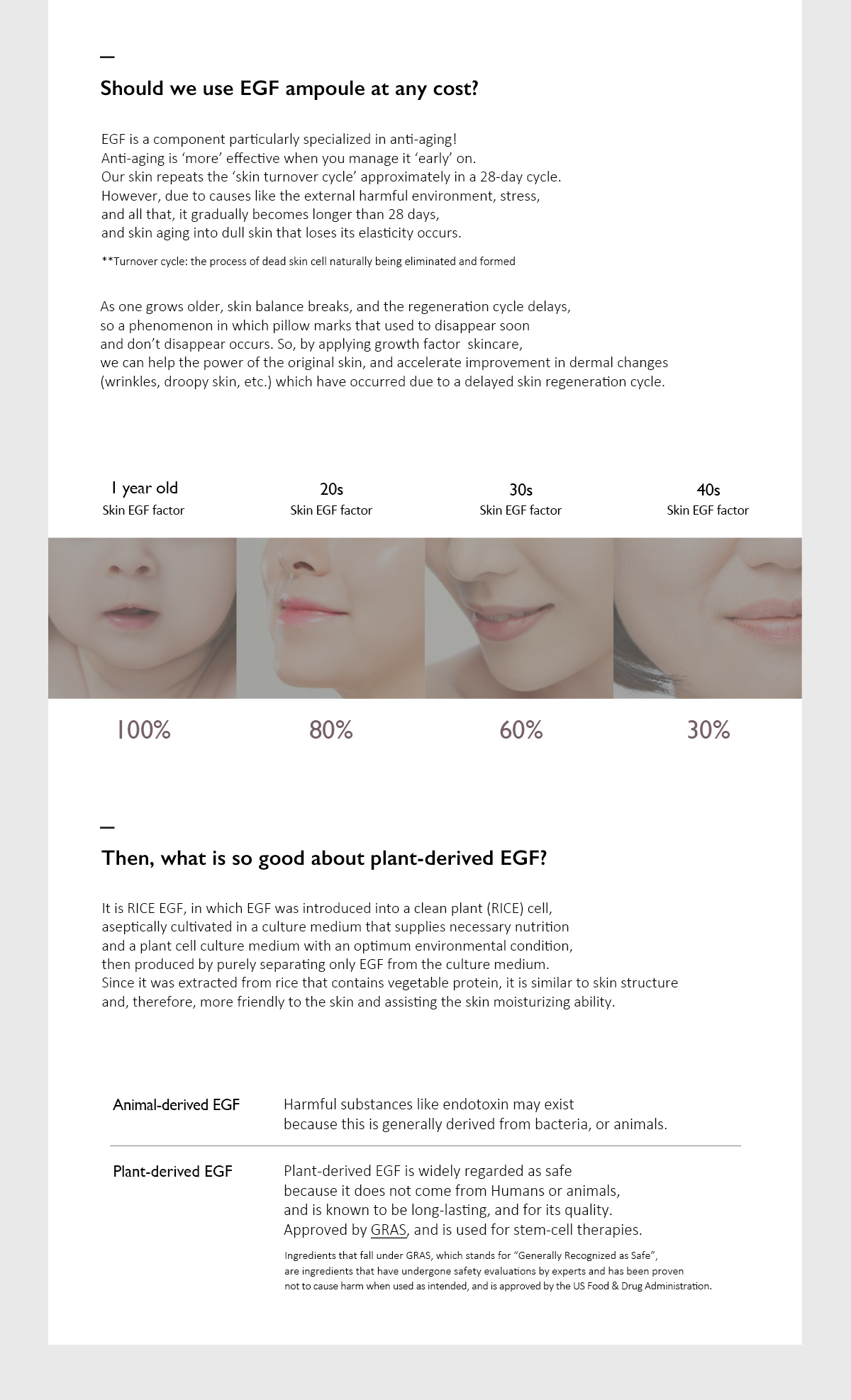 [Ampoule] After cleansing in the morning and evening, tidy up your skin texture with a toner. Then, drop 1~2 drops of EGF ampoule on your forehead, cheeks, chin, and other areas, gently patting to absorb and finish. [Eye cream] Every morning, use it before applying the sunscreen. Every night after the toner step, get a small amount and spread it out on the skin. Apply it to dry skin except the eye area.