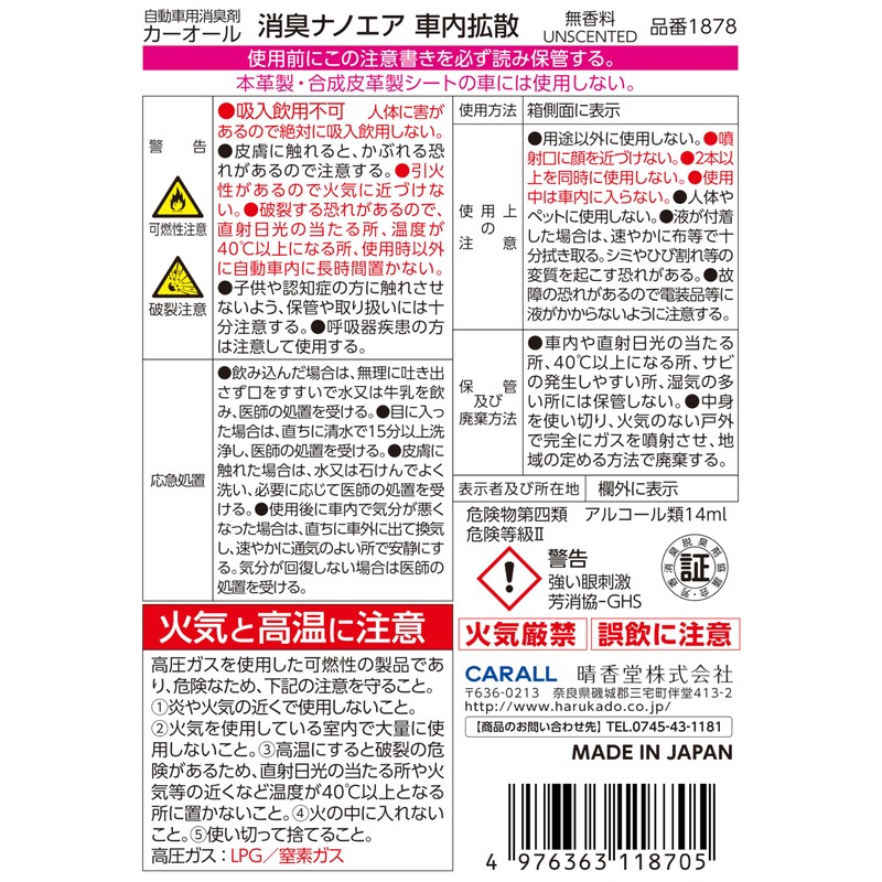 晴香堂(HARUKADO) カーオール 車用 芳香剤 消臭ナノエア 車内拡散 無香料 40ml 1878