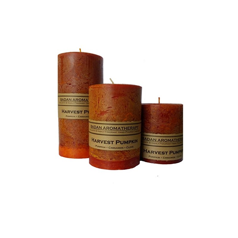 Harvest Pumpkin Spice Cinnamon Clove Scented Pillar Candle Set (3 Piece Set, Rustic, Dark Orange)