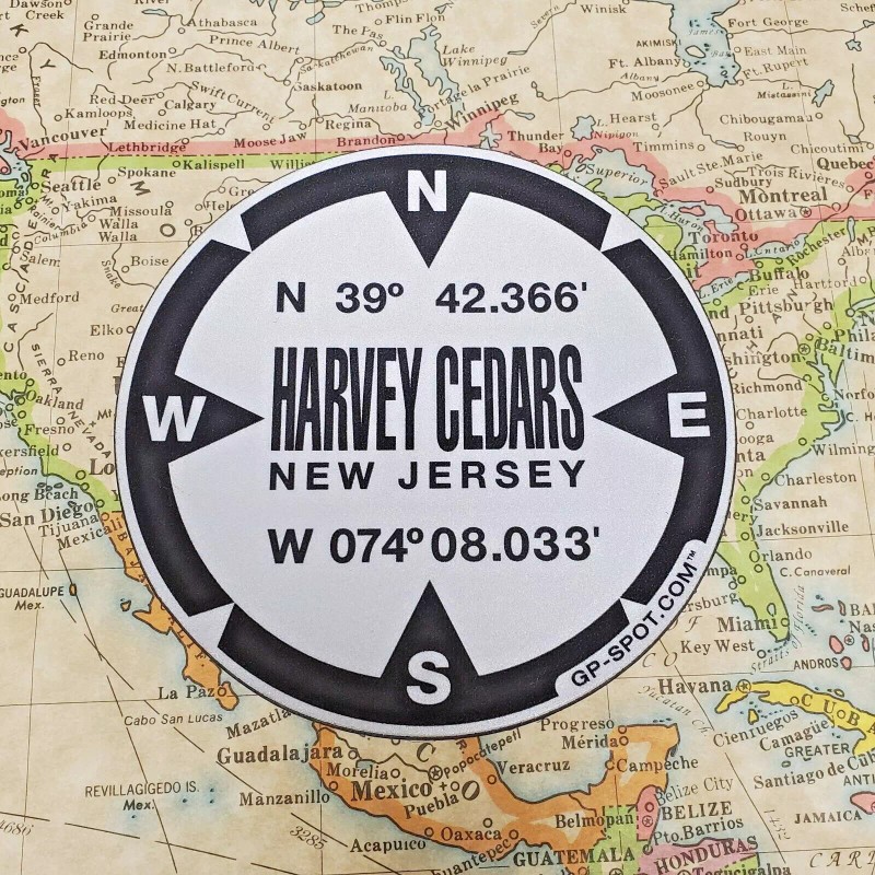 Harvey Cedars, New Jersey GPS Magnet - Reflective Vinyl GPS Marker Magnet
