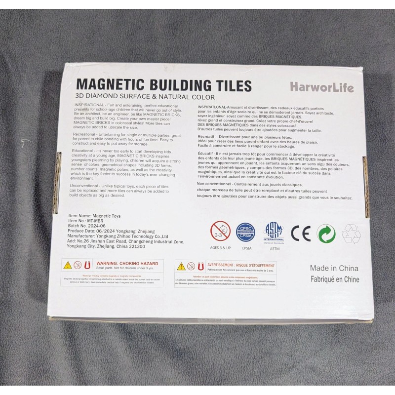 Unlock endless creativity and learning with this brand new, 120-piece set of HarworLife Magnetic Building Tiles! Featuring a unique 3D diamond surface and natural colors, these STEM-approved magnetic blocks are designed to inspire young minds aged 3 and up.